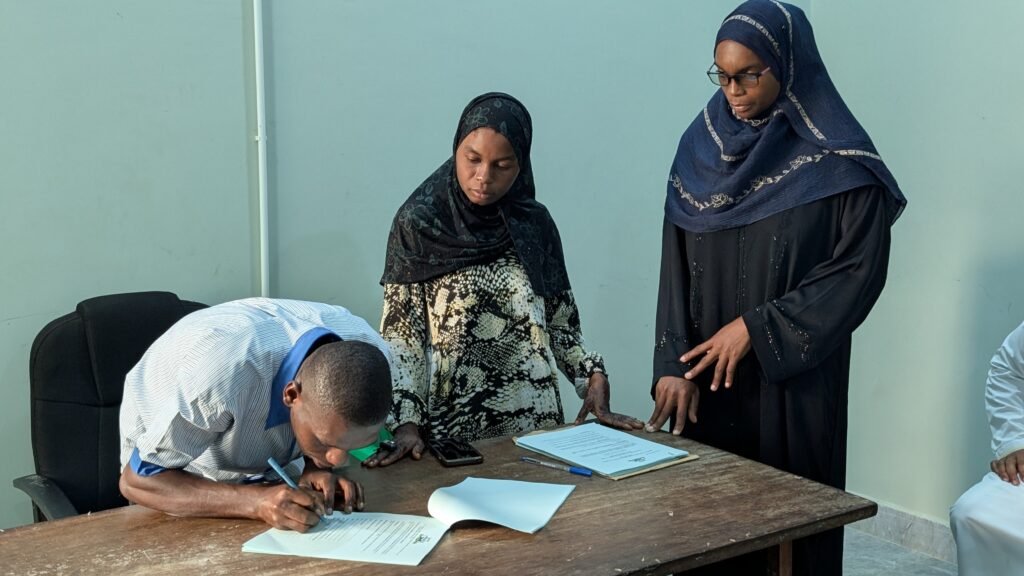 The signing itself followed a symbolic and community-centered process. The agreements were first signed by representatives of the four shehias—affirming local ownership—before being signed by the Director of the Department of Forests and finally endorsed by the Central District Commissioner.